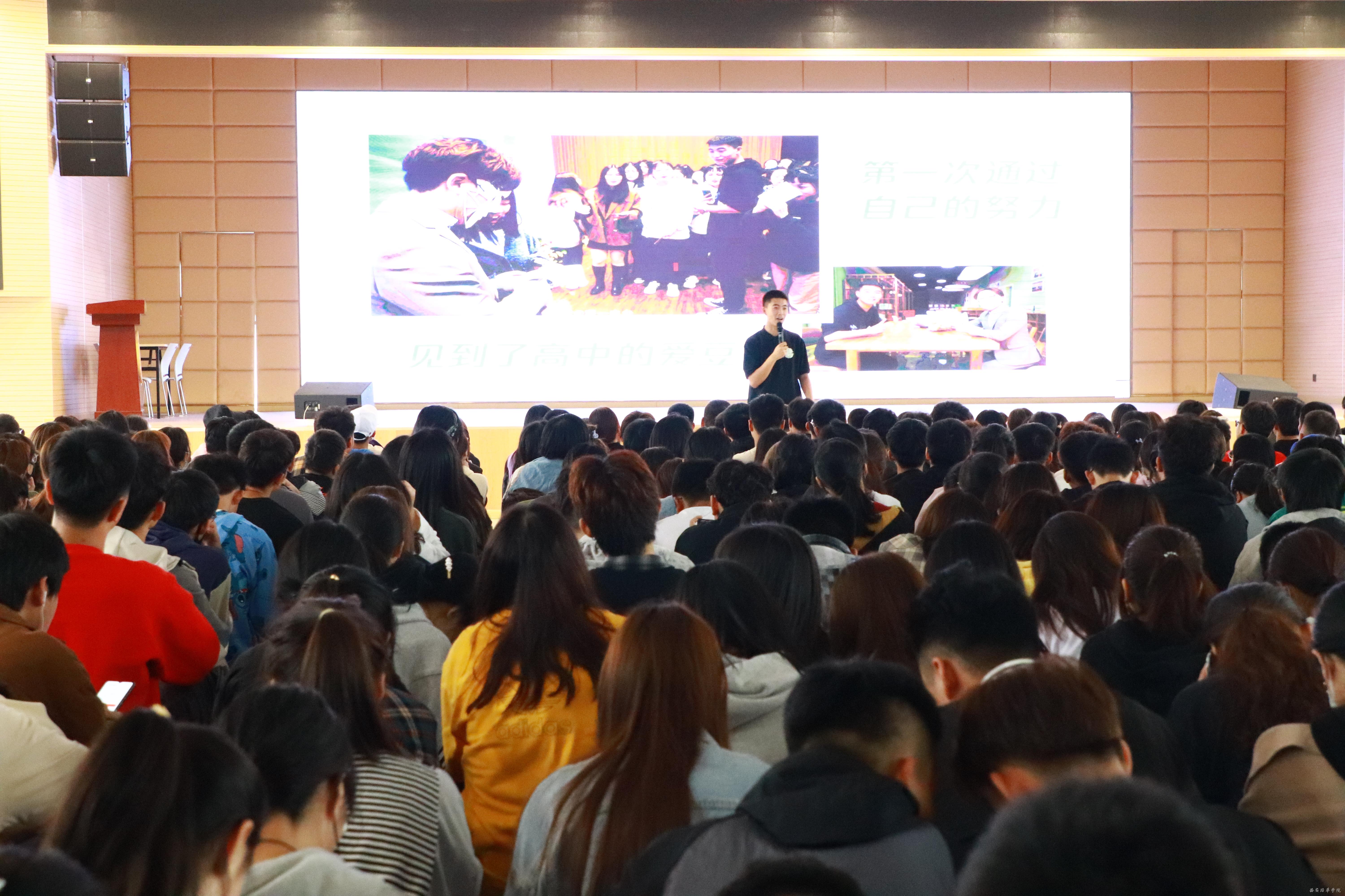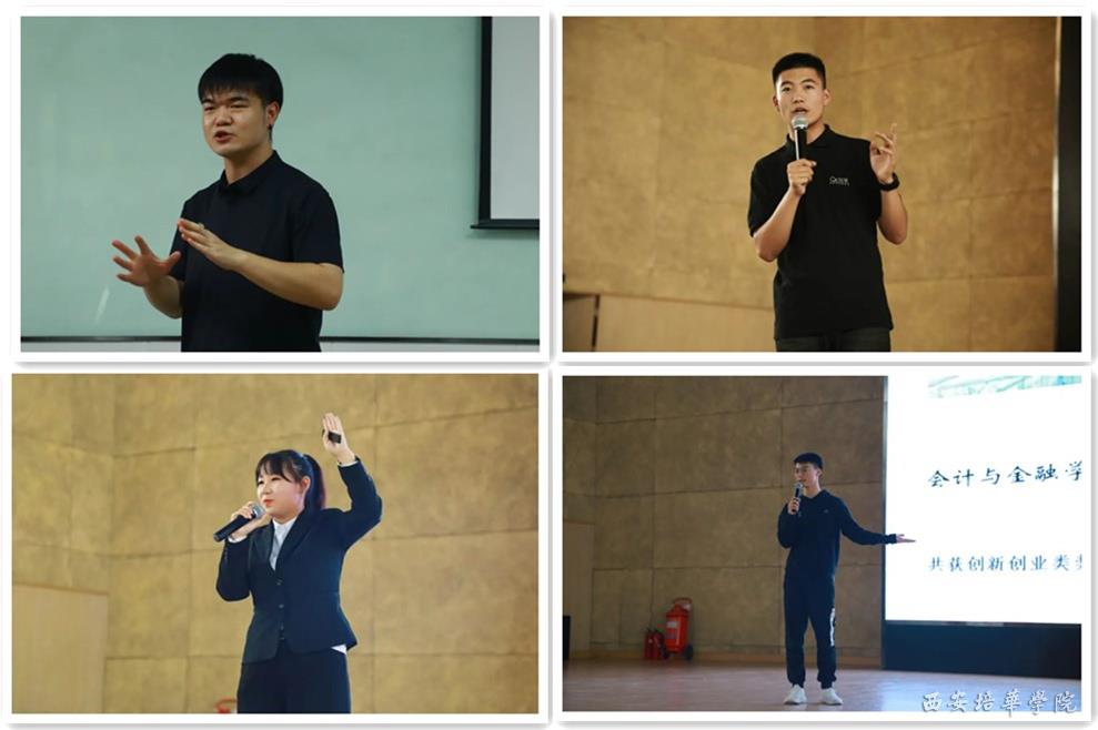 第六届“互联网+”创新创业大赛省赛金奖获得者张东帅同学,以“社团创客·校园的创意玩家”为主题分享了他的魔术人生。第十届“挑战杯”创业计划竞赛银奖获得者杨可欣同学通过她在大学期间的志愿公益生活,让新生更全面了解创新创业的内涵。创享工作室创始人腊林涛同学从创业初衷、创业过程、创业感悟等几个方面讲述了其创业心路。脉承项目负责人叶欣鸿同学着重从创业团队管理方面进行分享,让同学了解团队合作的重要性。西安零动益智信息科技有限公司法人夏消寒同学以他失败、奋斗、失败、在奋斗的四段创业经历,让新生了解创业不易,负重前行。5名同学的分享,赢得了在场学生的阵阵掌声,他们通过分享自己的创业经历,让新生明白创新创业离自己不远,只要认定目标,坚持不懈的努力就能取得成功。