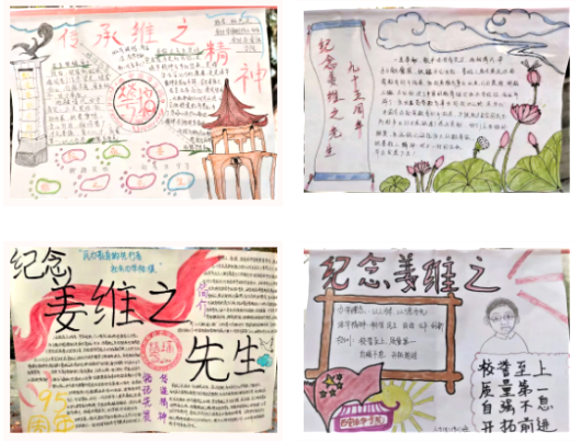活动现场,师生共同参观各展览手抄报。他们略显稚嫩的一笔一划讲述自己心中的“姜维之精神”,缅怀了老校长两袖清风、艰苦奋斗的品格,诉说着一份自己对姜维之老先生的怀念之情。