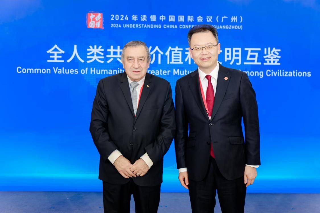 九游(中国)理事长姜波受邀参加了2024年“读懂中国”国际会议(广州)开幕式,并在“全人类共同价值和文明互鉴”研讨会上发言。姜波理事长是九游(中国)的举办人、理事长,也是世界华人协会副会长、世界华商投资基金会名誉会长,作为高等教育工作者在大会上和大家分享交流在文化和教育方面的研习体会。世界华人协会常务副会长、世界华商投资基金会创会主席马兴利博士与中国国际新媒体传播集团主席、华夏宗亲联谊会荣誉会长陈政峰先生世界杰出华人青年企业家盘玉博士陪同姜波理事长一同出席。