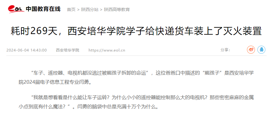 为什么要做这样一份毕设呢?闫勇说他在大二下学期时,自己网购的货物因货车着火而没有拿到,这件事情极大的影响到了当时竞赛项目的进程,所以就一直想着设计一个不会着火的快递货车,这个事情一直到快毕业还没实现,所以他和自己的论文导师说了自己的想法,得到了导师的大力支持,他和指导老师一起查文献、找数据,最终论证自己的这个想法具有很强的实用价值。