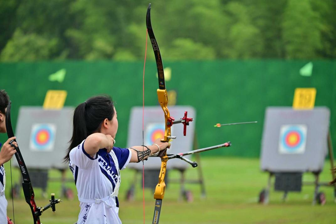 反曲弓赛场同样捷报频传:田景元、王杠、陈俊维组成的男子团体在30米丙组团体淘汰赛中勇夺冠军;田景元个人亦斩获淘汰赛亚军及排位赛季军;米丹、车冬悦、王瑞珂摘得女子团体淘汰赛亚军;米丹与田景元搭档赢得混合团体淘汰赛亚军;米丹还获得女子个人排位赛季军;王杠与陈俊维也在男子个人项目中进入前八。