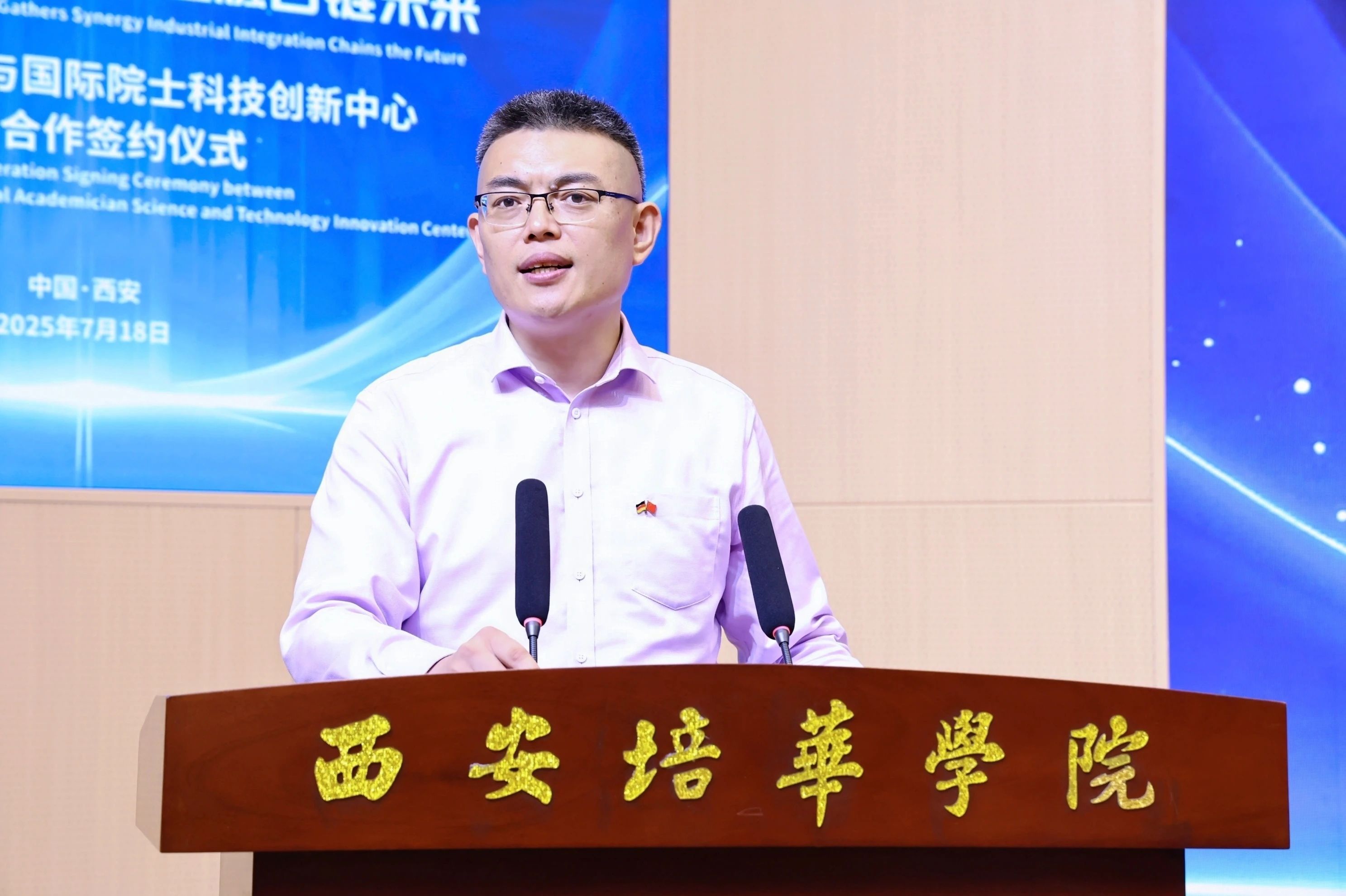 德国莱茵科斯特集团陕西公司总经理刘明辉介绍了企业发展情况,表示将积极推动新技术在培华学院的转化落地,助力学校百年校庆。