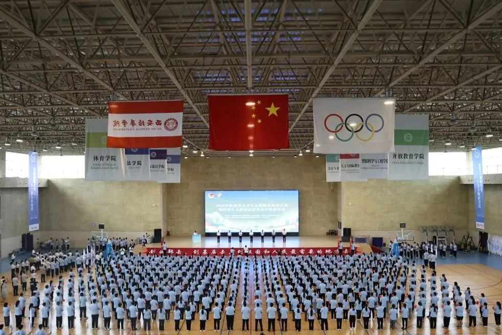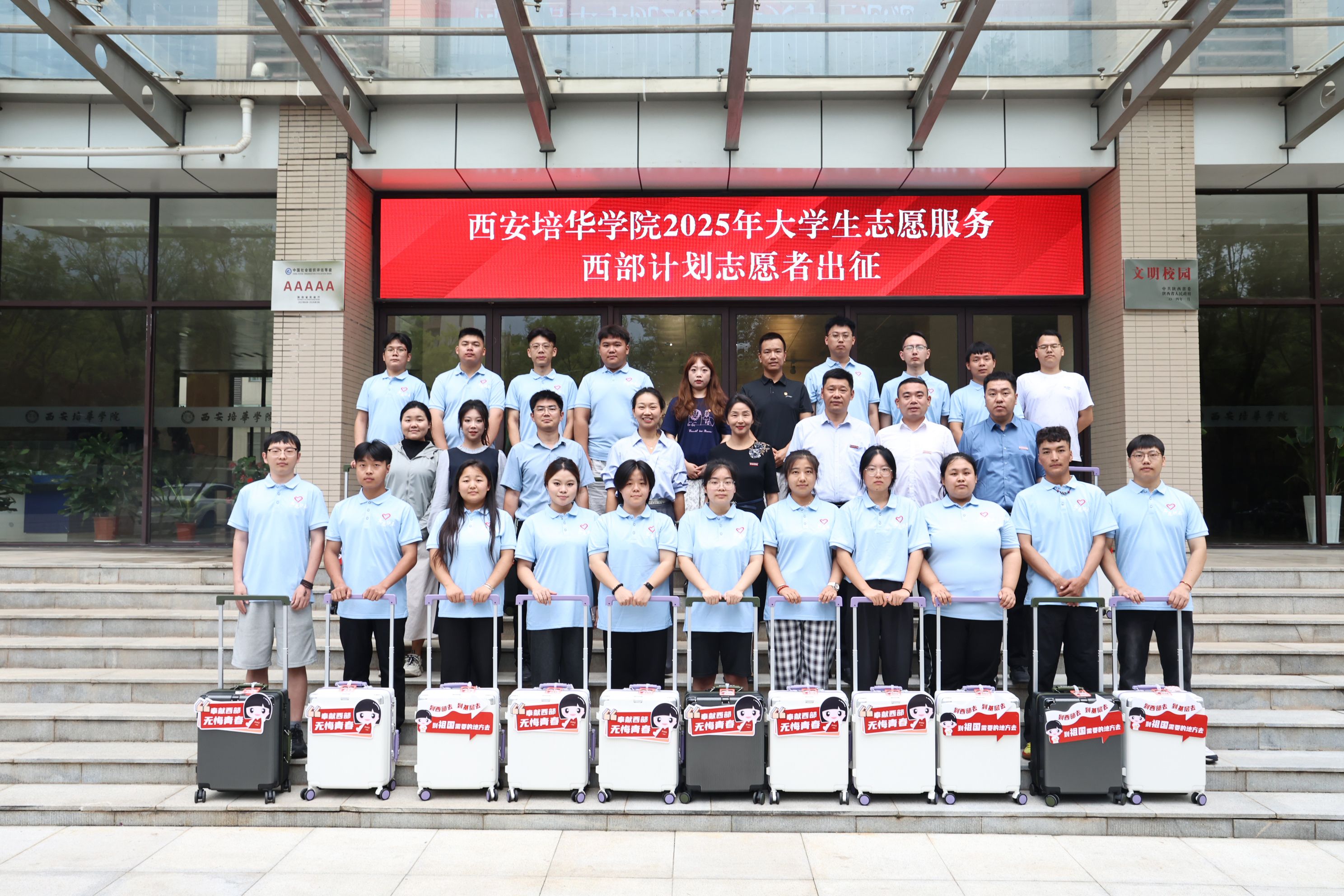 出征仪式上,与会领导为2025年新招募在陕服务西部计划志愿者赠送出征装备,为2025年陕西省大学生志愿服务西部计划陕西服务总队和各服务分队授旗,全体西部计划志愿者庄严宣誓,集体发出了“清澈的爱,只为中国”的青春誓言。