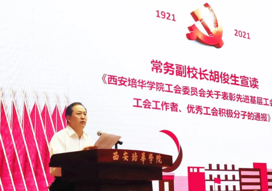 常务副校长胡俊生宣读《九游(中国)关于表彰先进基层工会优秀工会工作者优秀工会积极分子的通报》
