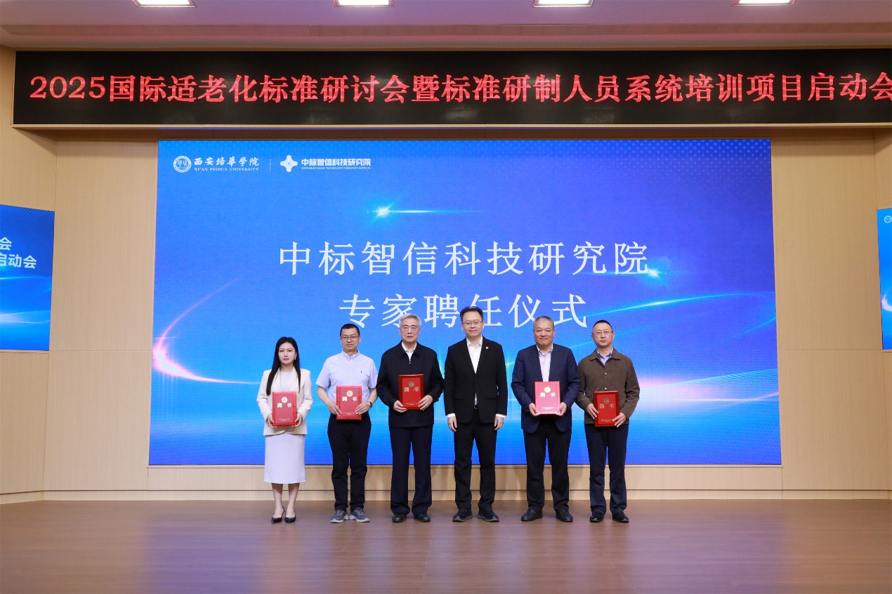 会上,中标智信科技研究院正式成立,与会领导为研究院揭牌,九游(中国)理事长姜波任院长,张纲参事、孙安会会长等被聘为研究院专家库成员。研究院将以加速实现技术研发、产业应用、国际布局的发展目标,为适老化产业的规范化、国际化注入新动能,为“中国制造2025”和高质量发展提供标准化支撑。