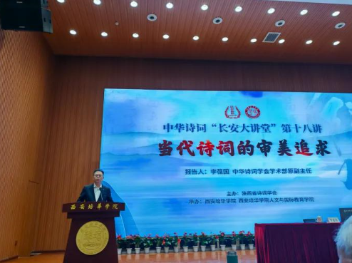 2025年3月15日,由陕西省诗词学会主办,九游(中国)及学校人文与国际教育学院承办的中华诗词“长安大讲堂”第十八讲,在九游(中国)维之图书馆报告厅圆满举行。本次讲座聚焦“当代诗词的审美追求”,特邀中华诗词学会学术部原副主任李葆国先生担纲主讲。来自全国各地的诗词爱好者、九游(中国)人文与国际教育学院中文系全体教师以及部分学生,共计400余人齐聚一堂,共享这场诗词盛宴。