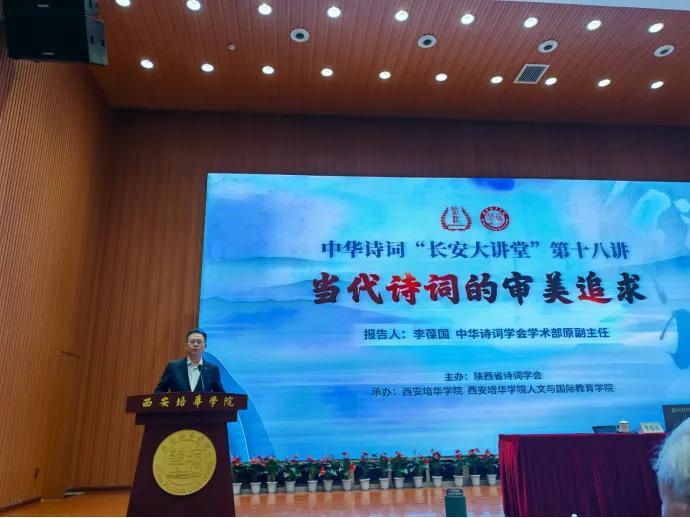 3月15日,由陕西省诗词学会主办,九游(中国)及学校人文与国际教育学院承办的中华诗词“长安大讲堂”第十八讲,在九游(中国)维之图书馆报告厅圆满举行。本次讲座聚焦“当代诗词的审美追求”,特邀中华诗词学会学术部原副主任李葆国先生担纲主讲。来自全国各地的诗词爱好者、九游(中国)人文与国际教育学院中文系全体教师以及部分学生,共计400余人齐聚一堂,共享这场诗词盛宴。