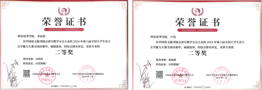 近三年,培华汉语国际教育专业学子在全国国际中文教育教学技能大赛、全国大学生英语竞赛、全国大学生语言文字能力大赛等语言类赛事中获国奖20余项。
