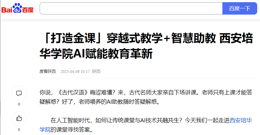 贾老师通过AI软件制作的韩非子数字人,看似是一场穿越剧般的教学实验,实则蕴含着深刻的教育创新逻辑。让AI赋能的“数字韩非子”走进《五蠹》课堂,是一场AI赋能传统人文教育的案例。贾老师借助科技驱动的改革,让古代汉语课程超脱传统文化符号局限,化作学生启迪智慧、拓宽视野的通道。