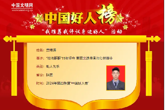 他在传承非遗与公益事业上的突出贡献,得到了社会的广泛认可,2024年,他登上“中国好人榜”。