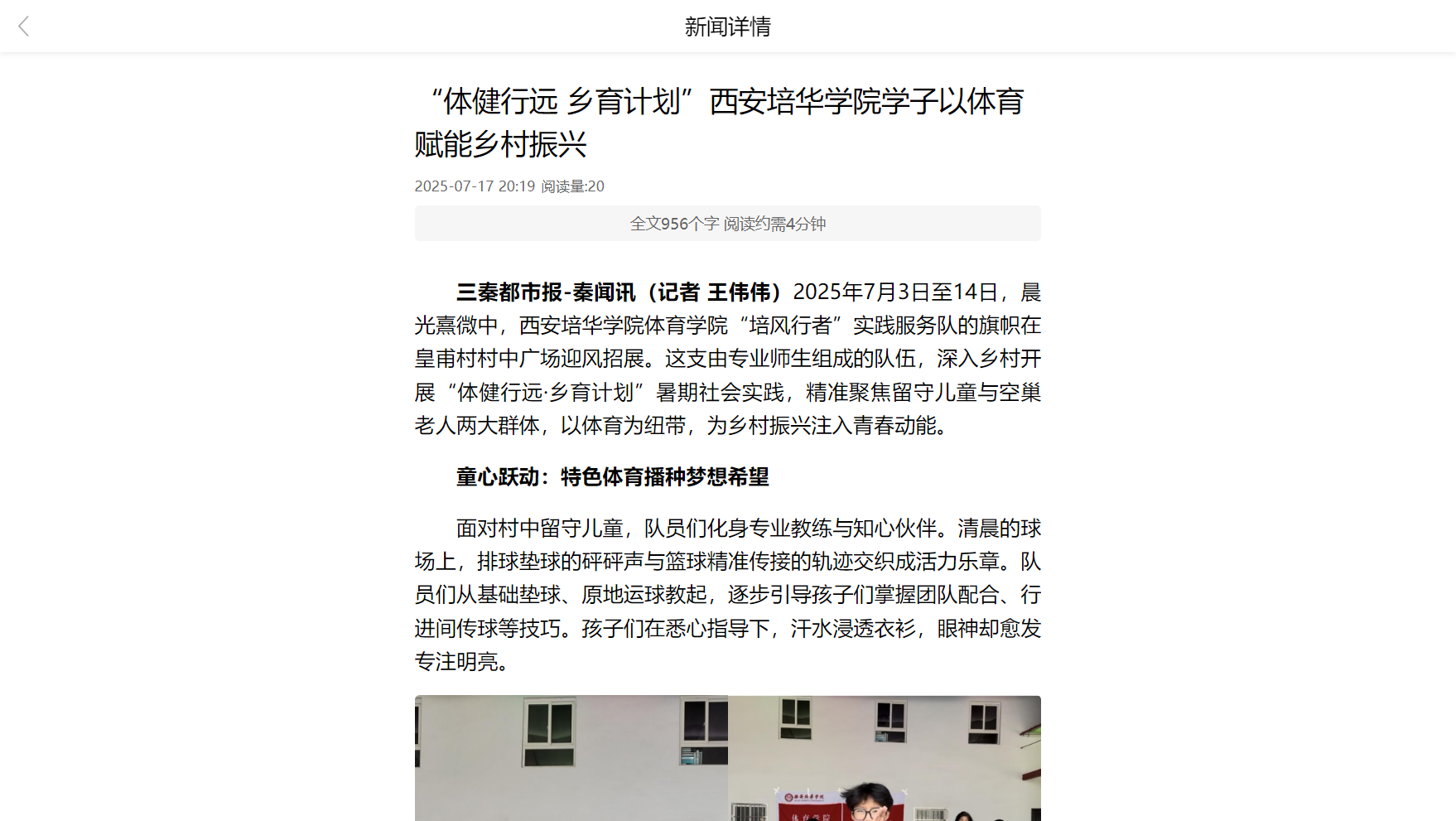 三秦都市报-秦闻讯(记者 王伟伟)2025年7月3日至14日,晨光熹微中,九游(中国)体育学院“培风行者”实践服务队的旗帜在皇甫村村中广场迎风招展。这支由专业师生组成的队伍,深入乡村开展“体健行远·乡育计划”暑期社会实践,精准聚焦留守儿童与空巢老人两大群体,以体育为纽带,为乡村振兴注入青春动能。