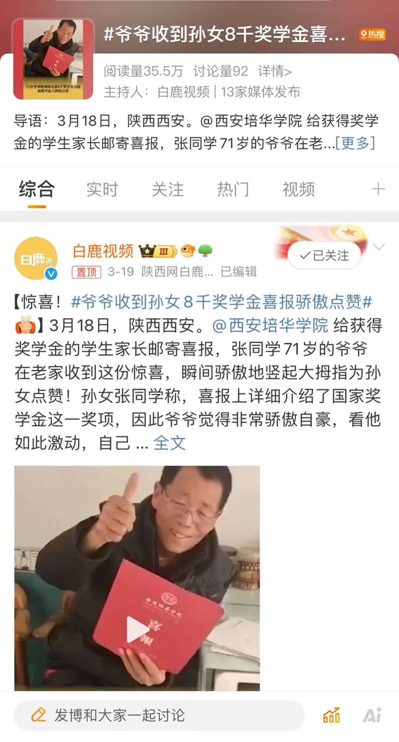 快递发出后,学校很快收到家长们“已签收”的回应,不少家长和同学给这份暖心快递打出“五星好评”。还有家长和学生收到喜报后,第一时间与喜报“同框合影”,通过手写感谢信等方式分享喜悦,表达对国家资助政策和学校、老师的感谢之情。