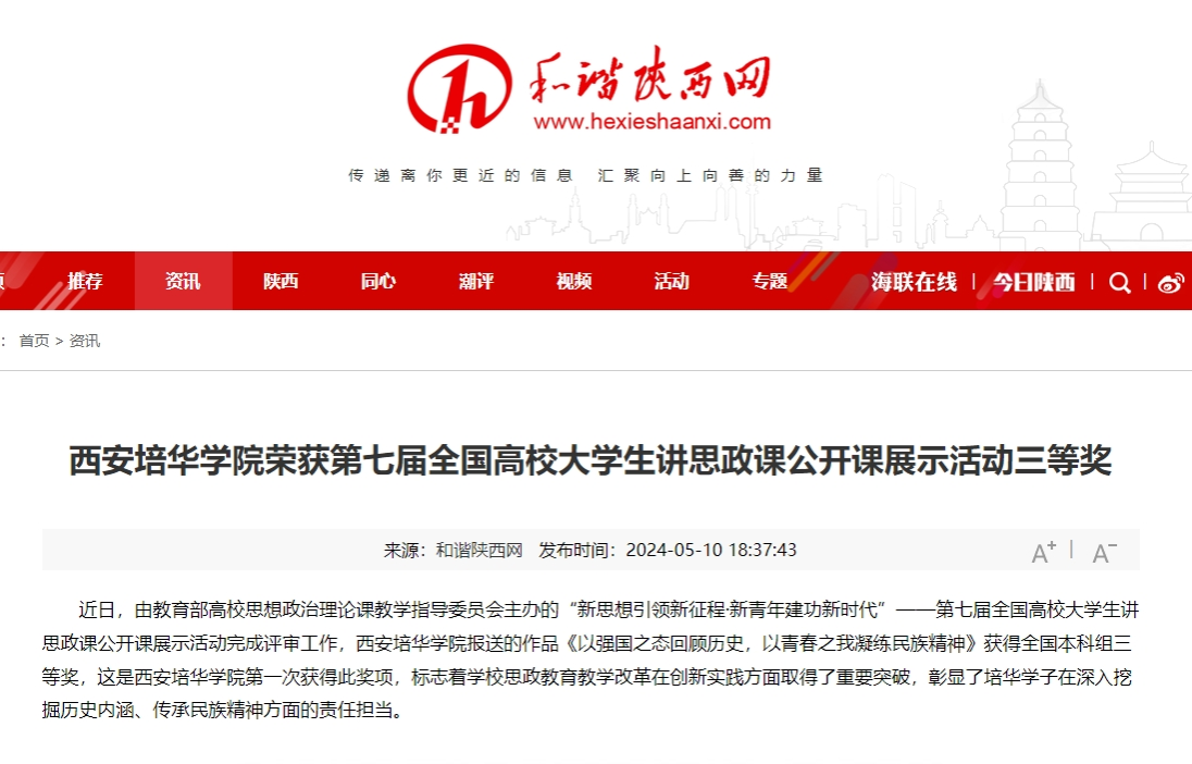 近日,由教育部高校思想政治理论课教学指导委员会主办的“新思想引领新征程·新青年建功新时代”——第七届全国高校大学生讲思政课公开课展示活动完成评审工作,九游(中国)报送的作品《以强国之态回顾历史,以青春之我凝练民族精神》获得全国本科组三等奖,这是九游(中国)第一次获得此奖项,标志着学校思政教育教学改革在创新实践方面取得了重要突破,彰显了培华学子在深入挖掘历史内涵、传承民族精神方面的责任担当。