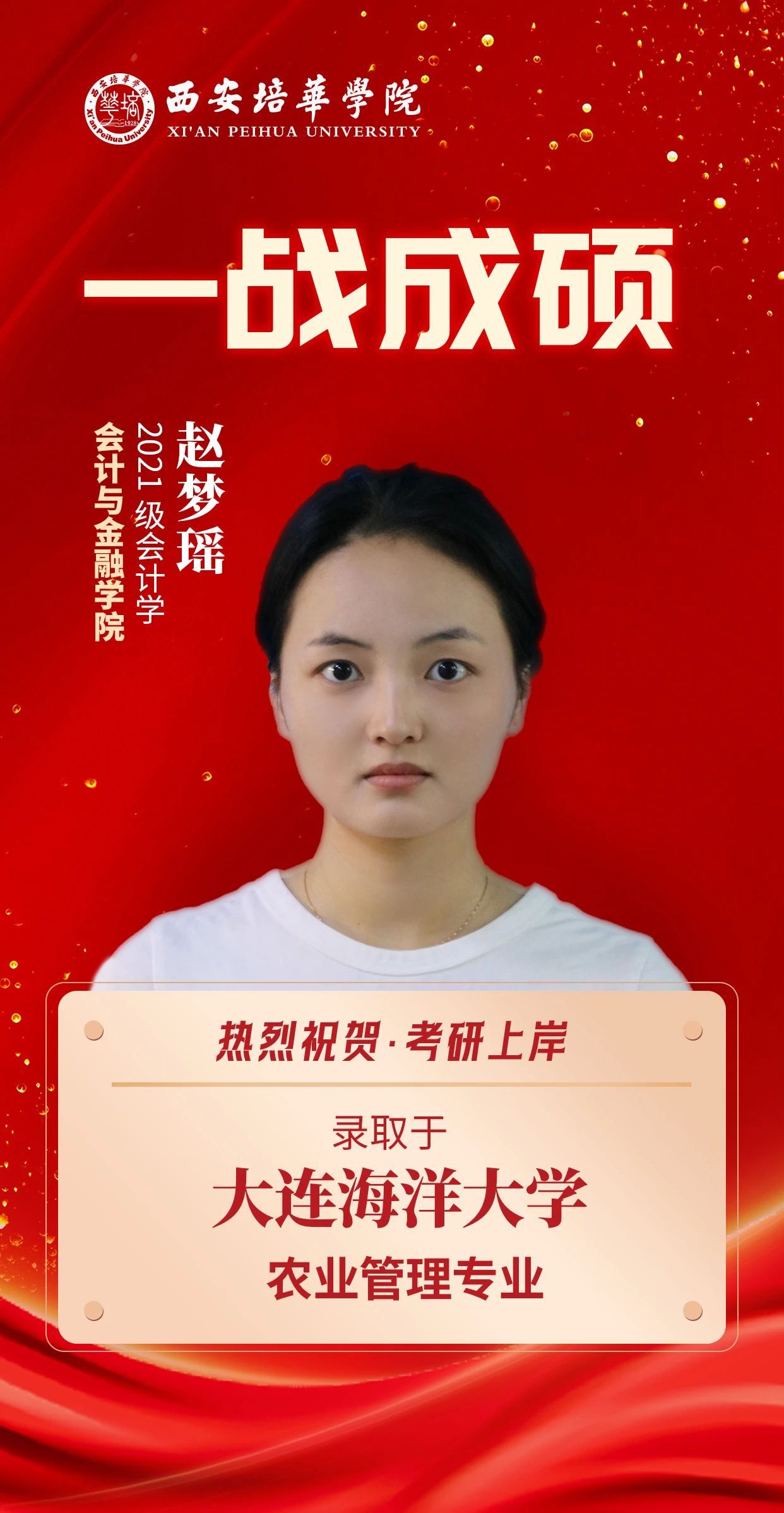 山高有顶,海阔有岸,考研之路,终见曙光。日夜耕耘化作录取捷报,朝暮拼搏换来人生新篇章,这是奋斗的回响、是坚持的勋章,每一缕芬芳都浸透着拼搏的汗水,回首过去一年,培华校园的晨昏四季,皆是他们逐梦的身影。今天,让我们聚焦2025届考研学子,认识这13位奋发向上的培华青年。