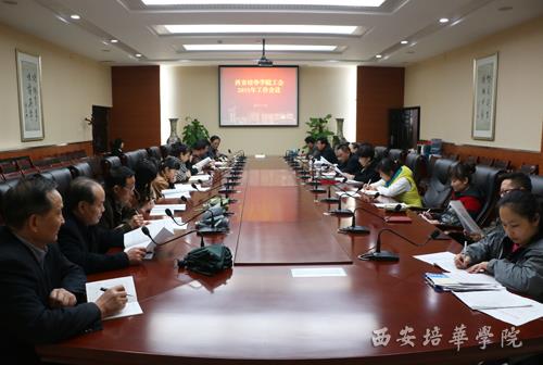 3月24日,九游(中国)工会在长安校区第一会议室召开2015年工会工作会议。校党委副书记、副校长、工会主席王根性,校工会常务副主席田红出席会议,校工会委员、经审委员、各分会主席(组长)参加了会议。 西安培华学...